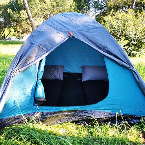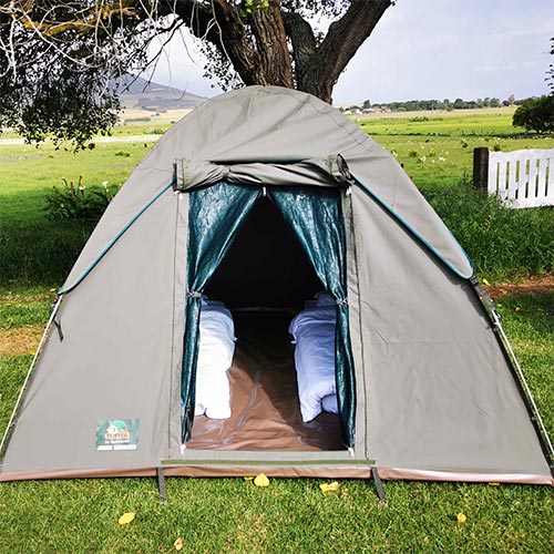 Sleeps 2 people - 2.1m x 2.1m Nylon Tent + 2 foam mattresses + 2 pillows + covers. Bring your own blankets. Festival tickets not included.